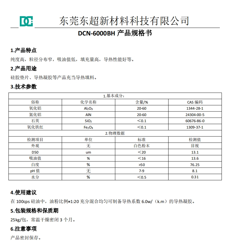 6.2W/m·K高性能导热凝胶粉体,高挤出16.76g/min ,D99≤60μm,经过特殊改性技术处理,粉体与硅油相溶性佳、填充性好,性能稳定。