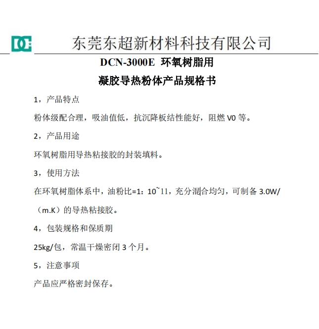 Ⅱ、环氧树脂粘接胶用导热粉体DCN-E系列主要性能指标