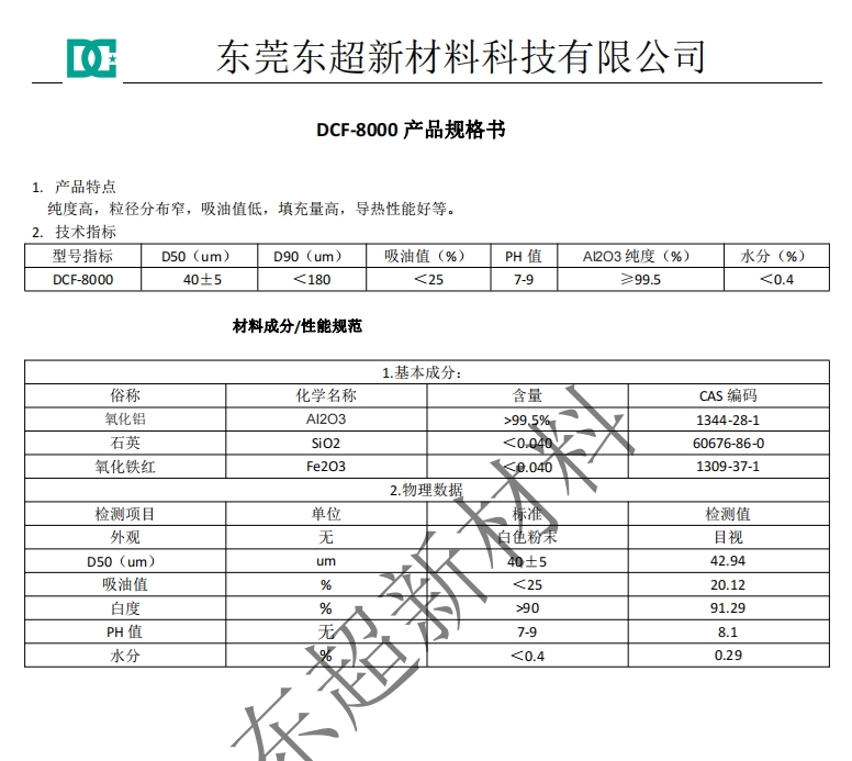 导热硅胶片专用导热粉体为导热硅胶专用粉体,极易与硅油捏合,成型后的导热硅胶导热系数稳定,具有高导热率,极高的导热性能,很好的使用稳定性。