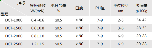 Ⅲ、导热双面胶专用粉体DCT系列主要性能指标