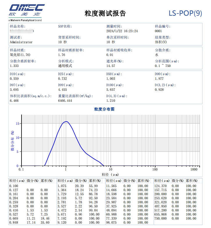产品特征:高纯度、粒度根据工艺可以进行控制、粒度分布均匀,磁性少、黑点少,白色无味粉末