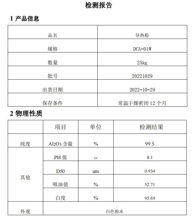 Ⅱ、高纯氧化铝DCA-01W系列主要性能指标