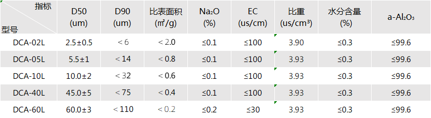 ​、DCA-L系列类球形氧化铝主要性能指标/Specification