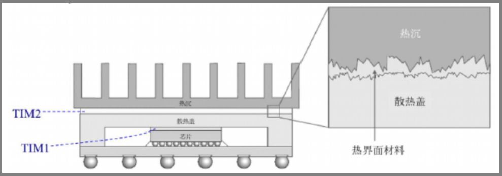 为保证发热元件的正常工作,在发热电子元件和散热装置之间填充能快速有效传热的材料,该材料称为热界面材料(ThermalInterfaceMaterials,TIMs)。热界面材料的使用从本质上改变了粗糙表面固体之间的热路径,从通过点接触和空气传导变为完全通过固体传导。热界面材料被认为是任何高效热管理系统的重要组成部分,这些材料广泛用于消费和工业电子系统,以确保高效散热并防止局部温度过载。对于任何热管理解决方案来说,热界面材料(TIM)都是不可忽视的关键组成部分。