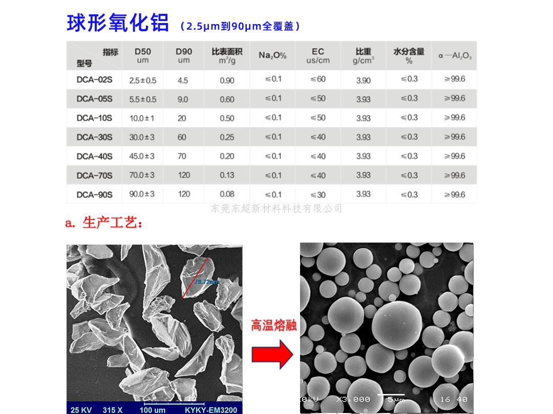氧化铝高导热复合材料由有机和聚合物材料(导热散装货物)和高导热填料组成。由于有机高分子材料的导热系数较低,很难改进,因此选择高温导体填料填充有机高分子材料,获得导热复合材料。氧化铝是导热复合材料的一种广泛使用的填料,主要是由于其导热性能高、绝缘性能好、理化性能稳定。那么影响氧化铝高导热复合材料导热系数的因素是什么?主要有两因素:(1)填料特性:真实密度、形貌(球形、类球、高纯)等。(2)融合性:比表面积(比表面积越真密度大,α相含量高、化学性质稳定,小吸油值越小,可添加量就增加)。 氧化铝高导热复合材料导热氧化铝是一种常用的复合导热材料的填料(其粒径分布窄、偶联改性合理),故可对高分子复合材料进行实施高浓度填充,可得 到低粘度流动性较好的混合物,且不影响硫化,高热传导率等。 本产品广泛应用于各种复合材料、灌封胶,环氧树脂,塑料、橡胶、尼龙、散热陶瓷等。 东莞东超新材料科技有限公司10余年专注高端功能性粉体研发、生产、销售于—体高新技术企业,主营:高导热氧化铝填料、硅胶导热粉、灌封胶导热粉、硅脂导热粉、凝胶导热粉、双面胶导热粉、覆铜板导热粉。公司配备有专业的导热粉体材料研究、表面改性研究实验室及检测室,研发中心占地面积2000㎡。公司目前拥有4000㎡生产改性工厂,能够独立地完成粉体小试、中试和批量化生产,满足客户的产品定制需求。年产量高达7000千万,一天正常产能1000T,目前已经通过ISO9001质量管理体系认证。产品广泛应用智能消费电子、通讯设备、光伏发电、高端装备、医疗行业、新能源汽车。公司理念:聚焦客户需求,提供优异的导热解决方案和服务,持续为客户创造最大的价值。东莞东超新材料科技有限公司诚挚期待与您合作。